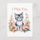 Jag missar dig | Grått Kitten i Rosa Flowers Vykort