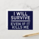 "Jag överlever - även om det dödor mig." Lägg till egen text/bild på baksidan. Se min butik för fler artiklar med den här designen.
