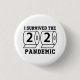 Lungt 2020-pandemiknapp med toalett papper med att säga: "Jag överlevt 2020-pandemin." Enkel svartvit design.