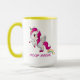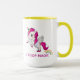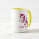 Ett mugg med ett lustigt ordspråk: Jag poppar magi. Designad med en vit vingad enmajs med rosa mane, svan och hovar. Horn har ringar av regnbåge färg och ser ut som en godislollipop. Den här söta majsen föder upp på ben. Söt rosa hjärta på kinden och långa, giftiga ögonfransar. En regnbåge bredvid ord magi.