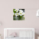 John 11:25-26 " är jag återuppståndelsen och livet ...". Gren täckt med vackra vita blommor och grönt löv.