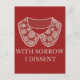 Protest mot att Roe mot Wade ogiltigförklarades, ett vykort med en RBG-stil broderad krage och en parafras över de tre domarnas avvikande mening.