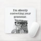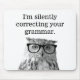 Jag rättar tyst din grammatik uggla mousserande. Fågelfotografera musmattan med humoristisk grammatikpolisslogan. Tur presentidé för skollärare. (grundskole-/grammatik/high school) Education humor med geeky animal. Svarta och vita björnar som bär nördiga glasögon. Roligt undervisar för manar kvinnor och barn. Första andra och tredje fjärde 6e-klass