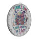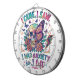 Svällande, färglös utformning med ett skeletthuvud, ro och fjärilar. Den färgstarka texten lyder: "Jag kom, jag såg, jag hade ångest så jag lämnat". Den här utformningen är tillgänglig för en mängd olika produkter.