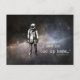 En bild av en kosmonaut eller astronaut i rymden. Texten lyder "Jag ser ingen gud här uppe" "Yuri Gagarin 1961"