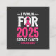 Fet och inspirerande "I Walk for 2025 - Breast Cancer Awareness"-design med det ikoniska rosan-bandet. Perfekt för att öka medvetenheten, evenemang för att samla in pengar och för att visa stöd för kombattanter, överlevande och närstående under bröstcancermånaden.