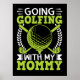 Denna glädjande illustration firar en golfing outing med mamma. Uttrycket "GOING GOLFING" visas på en framträdande plats i en levande grönt, ett tryckt teckensnitt, med ett subtilt dekorativt linjer som flankerar texten. En stor, texturerad golf boll i grönt är centrerad i designen, med två korsade golfbanor och bladvågor i vitt. Under detta visas "WITH MY" i vitt, följt av "MAMMA" i en matchande grönt, som fyller i det kärleksfulla meddelandet. Konstruktionen ställs in mot en solid svart bakgrund, skapar det golftematiska grafikpopup-fönstret.