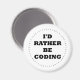 Jag skulle hellre vara koddesign. Den här magneten skulle ge en fantastisk gåva till vilken datorprogrammerare som helst i ditt liv. Anpassa den här produkten genom att ändra stilar/typer eller färg i bakgrunden.