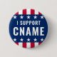 Knappen Pinback med texten "I support" och anpassningsbarnas kandidat namn med blå och röd stars och stripes gräns.