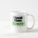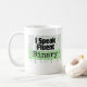 Jag talar flytande binär. Artificiellt... Den här designen har en digital design med texten "I Speak Fluent Binary" i fet svart teckensnitt. Bakgrunden är ett rutnät med grönten "1" och "0", som liknar binär kod. Konstruktionen innebär att kodningen eller datorspråket är flytande, med ord som "fluent binary" som antyder kunskaper i förståelse och arbete med binära koder. Bilden är ett lekfullt och kreativ sätt att representera någons kunskaper i datavetenskap eller programmering.
