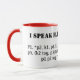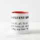 Den humoristiska mugg har ord: "Jag talar flytande stickning" och är prydd med instruktioner från mönster.
