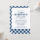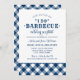 En festlig och snyggt bröllop bröllopsinbjudan till en avslappnad-bakgårdshändelse BBQ. I texten står det "Gå med oss för ett "I do" Barbecue Wedding Reception" till heder för ett par nyligen gifta. Färg med marin blå och vit design.