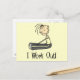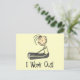 Stick figur t-shirts, tote bags, kort, klistermärken, mugg, magneter, sweatshirts, hoar och annat med tränings- och träningstema som du kan anpassa med namn eller annan text. Texten lyder "Jag jobbar ut!".