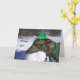 Tami, en vacker gråhund helt redo att springa efter den där guldpottens! Perfekt kort för den som älskar gråhundar eller är galen i hundar. Fira firandet av det gröna genom att skicka detta roliga kort! "Jag tävlar med dig!" är från mitt originalfotografi och är under min upphovsrätt.