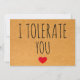 Jag tolererar dig Sarcastic Alla hjärtans dag Julkort