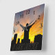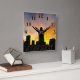 Klocka, väggklocka: En person som tittar vid solnedgången över staden och tror på sin herre, drömmar och mål.