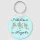 Tre stick figur änglar och svart text som lyder "Jag tror på Änglar" på blå bakgrund i en ängelnyckelkedja som säkert kommer att glädja alla som kärlek änglar och stick figurer!