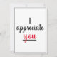 Ett kort av avslappnaden "Jag uppskattar dig". Rött och svart uppskattningskort som du kan göra personligt med en trevlig gest från chef, medarbetare eller vem som helst. Använda bara funktionen "Anpassa den här mallen" om du vill redigera baktexten så att den blir din egen. Annat pappert stilar tillgängligt.