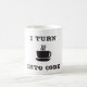 En klassikervitmugg med en avbilda av en kaffekopp och texterna, "som JAG VÄNDER" över, och "IN I KODIFIERA" nedanfört koppen. Visa vad du behöver att vara produktiv som en coder.