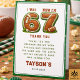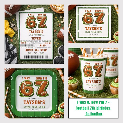 Anpassade "Jag var 6, nu är jag 7" fotboll 7-årsdag tack-kort. Roligt amerikansk fotboll-festpapper för barnkalas.