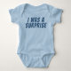 Jag var en överraskning. Lustigt text som säger på baby skjortor för twillingar, triplet etc. Den här var inte planerad. Det passar perfekt med vår baby-skjorta "jag var planerad" för den andra tvillingen. Teckensnittet kan ändras till valfri färg.