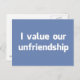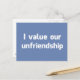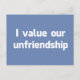 Ibland lägger vi ut sak som våra vänner inte gillar och mystiskt nog avvänjer de dig. Inte för att vi är bittra, men skicka dem ett vykort för att berätta hur mycket du värdesätter deras ovänlighet! *Våra produkter är endast avsedda för komiskt bruk och är inte avsedda att störa eller förstöra relationer. Vissa av oss kanske är bittra.. när allt kommer omkring är det social media.* Ja, vi är fortfarande bittra.