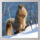 En hungrig ekorre på en vinterdag i kallet. Foto taget av Debra Rote i Oregon, IL.