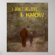 Den här designen visar ett foto av väg genom skogen. I väg finns det en kvinna som går från kameran och chattar med sin stora, mörk brun, håriga vän, bättre känd som Bigfoot eller Sasquatch bredvid henne! I närheten av högerna av fotografiet, överst och grund, texten "Jag tror inte, jag vet!". Fotot har en effekt på det, vilket ge gör det till en vintage.För oss som vet..