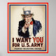 Stor patriotisk farbror Sam, jag vill ha dig till USA:s armé, Rekryteringsutskrift. Ursprungligen målad av den välkända, mest berömda reklamkonstnären James Montgomery Flagg.