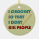 En tunga i kindslogan, "som jag virkar, så att jag inte dödar folk med en tecknadvirkningkrok.