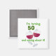 Den här magneten är till nån som fyller 50 år. De två vin-glasen och texten "Jag vrider 50 och väntar på det!" är perfekt för älskare i vin.