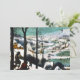 Kort med Pieter Bruegel den äldres oljemålning på trä Jägare i snön (1565). En by insvept i snö välkomnar en grupp jägare och hundar tillbaka. Bybor åker skridsko på de isiga sjöarna. En glad julpresent!