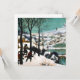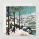 Kort med Pieter Bruegel den äldres oljemålning på trä Jägare i snön (1565). En by insvept i snö välkomnar en grupp jägare och hundar tillbaka. Bybor åker skridskor på de isiga sjöarna. En glad julpresent!