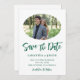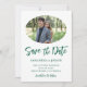 Den jägaregröna färgen på den handskrivna stilen "Spara datumet" skript teckensnitt och annan text kan anpassas.