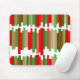Den här musmattan har en röd jul mönster i linjer och grönt i varierande längd.
