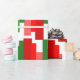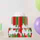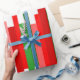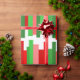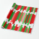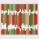Den pappra inslagningen har en mönster av linjer i rött och grönt i varierande längd.