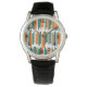 Denna manar har mönster i linjer i teal och orange i varierande längd.