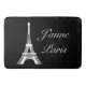 En trevlig badmatta med ord "J'aime Paris" och en bild av det Eiffel torn. Du kan ändra bakgrundsfärgen, men den ska looken som var bäst på en svart, eller mörk färgade bakgrund.