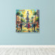 Upplev den pulserande själen i Jakarta genom detta elektrifierande impressionistiska mästerverk som firar Indonesiens dynamiska huvudstad i all dess moderna energi, kulturella stolthet och tropiska prakt. En magnifik kvinnlig staty reser sig majestätiskt i kompositionens mitt, hennes graciösa form återgiven i rika lila och iriserande nyanser som tycks lysa med andlig närvaro och nationell stolthet, hennes flödande klänning och utsträckta armar firar frihet och kulturell identitet. Den lysande himlen exploderar ovanför i virvlande guld, mjuka gula och strålande blå nyanser som tycks dansa med tropisk värme och konstnärlig passion. Historiska koloniala byggnader i varma terrakotta-, kräm- och roströda toner inramar torget på båda sidor