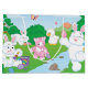 En härlig bäck och skog bildar inställningen för en rolig påskäggjakt! Som en Webkinz kanin målar i förgrunden, två andra kaniner, en anka och en rosa Lil vårget allt sökande för mångfärgade ägg för deras basket.