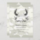 Rustik lantlig stil hjorthorn "Jakten är över" rolig humor grafisk design på en kamouflage bakgrund med en enkel elegant touch för din bröllopsdusch/par bröllopsfest eller den kommande stora dagen! Vänligen anpassa den med din egen text i enlighet med tillfället eller klicka på "Anpassa" knappen för att gå till designverktyget där du kan lägga till text, ändra teckensnitt, textstorlek, textfärg, textpositionering och mer.