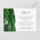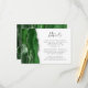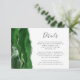Den vänstra kanten på detta eleganta moderna bröllopsdetaljerfäste har en jaktgrön akvatint kant trimmat med falskt silverglitter. Titeln visas i handskriven stil, med anpassningsbar text nedan i kolgrå kopparplåtstil på vit bakgrund. Baksidan har en matchande grön och silver akvatint design.