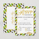 Svarskort för OSA i elegant bröllop med gräns i JAMAICA i mönster och guld i sidled. Det omvända budskapet lyder: "Och de två skall bli ett". Matchande objekt är tillgängliga. Texten kan anpassas helt och hållet med ditt eget meddelande och innehåll. Kan användas både för bröllop och för andra firande. Var stolt över ert arv på er speciella dag.