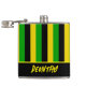 Jamaican flagga färgad Black, gult och grönt, rengjord höftkolv. Texten över grund är anpassadet så att du kan lägga till ditt eget namn eller meddelande