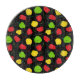 Färgfläckiga karibiska köksskivor med mönster av rött, gult och grönt Jamaican scotch bonnet chili paprika på svart paprika