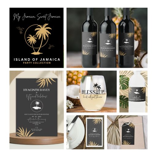 Förhöj din fest med denna snygga och stämningsfulla inbjudan, perfekt för alla speciella tillfällen. Mot en rik, mörk bakgrund är en sofistikerad siluett av Jamaica elegant parad med ett ensamt palmträd, vilket skapar en chic och tropisk stämning. Med en raffinerad design som ger en touch av sofistikering till din händelse, sätter denna inbjudan tonen för oförglömliga ögonblick. Perfekt för födelsedagar, destinationbröllop och exklusiva sammankomster, kombinerar den enkelt öns lockelse med en polerad estetik.