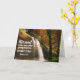 Idéns hälsningskort visar ett vackert vattenfall i en skog med träd med färgstarka höst löv. Det är Bible Verse James 1:12, "Blsed är den som framhärdar under rättegången, för efter att ha klarat provet kommer den personen att få den krona av livet som Herren har lovat dem som kärlek honom."