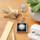 Jämförelse av storleka för en storstjärna fyrkantig silverfärgad nyckelring