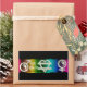 En texturerad regnbågsbakgrund med de manliga och kvinnliga tecknen, som innefattar hoppande i mitten av tecknen. I centrum av denna design finns ett hjärta med likhetstecken. I ett vitt typsnitt är Kärlek jämlikhet texten.