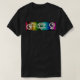 En texturerad regnbågsbakgrund med de manliga och kvinnliga tecknen, som innefattar hoppande i mitten av tecknen. I centrum av denna design finns ett hjärta med likhetstecken. I ett vitt typsnitt är Kärlek jämlikhet texten.